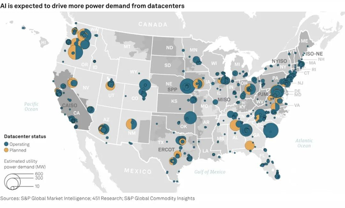 其次,美国业面临着基础设施的挑战:AI和机器人是能源消耗巨兽。据预测,到2030年,仅数据中心就可能消耗美国总电力的8%。能源基础设施建设尚未做好准备。