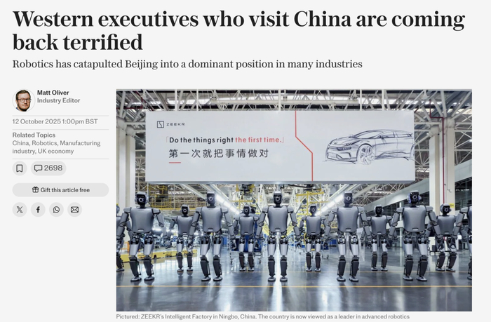 近日,英国《每日电讯报》的一篇深度报道,揭示了众多西方企业高管在参观了中国的“黑灯工厂”后,普遍感受到的一种复杂情绪——