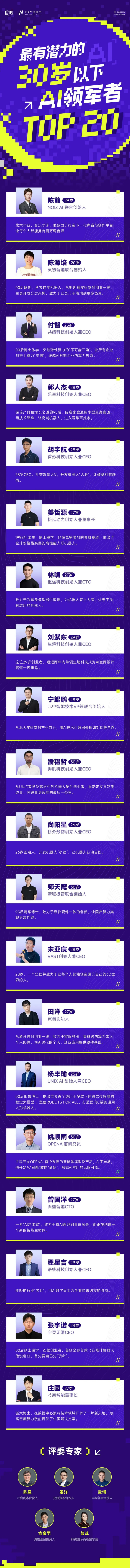 这也是我们为什么要做这一份“最有潜力的30岁以下AI领军者·TOP20榜单”的原因。